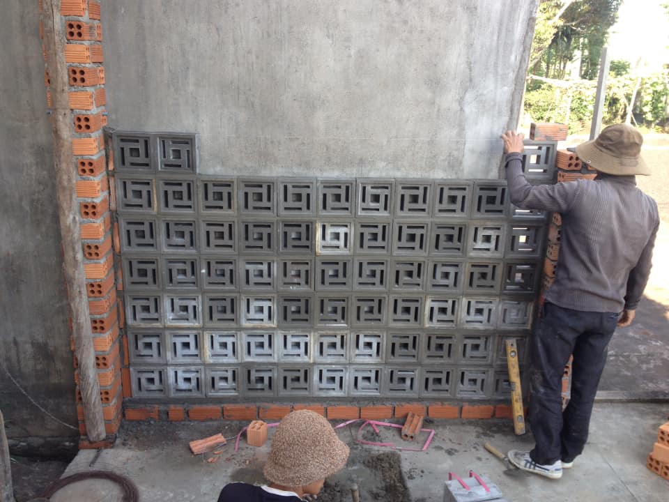 - Gạch bông gió sẽ khô rất nhanh nên chúng ta có thể tiến hành cùng các mảng tường khác để tiết kiệm nhanh công.